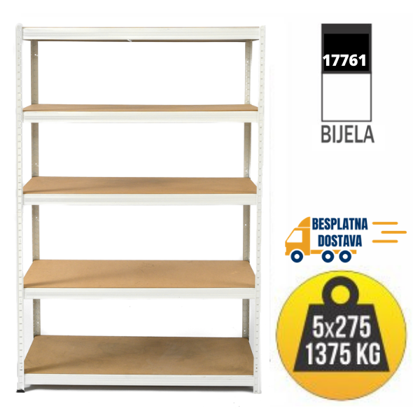 Polica metal-medijapan 180x120x45cm 5x275 kg