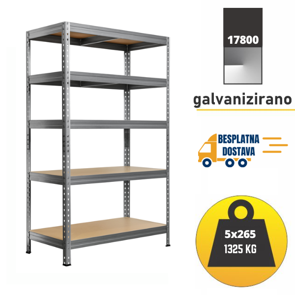 Metalni dio police, L profili imaju perforaciju što omogućava podešavanje razmaka između nivoa/ploča.
