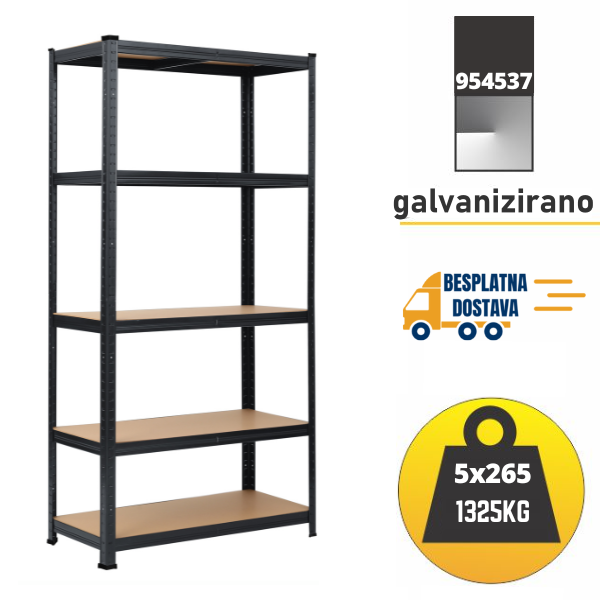 Polica metal-medijapan 180x90x45cm, 5x265kg