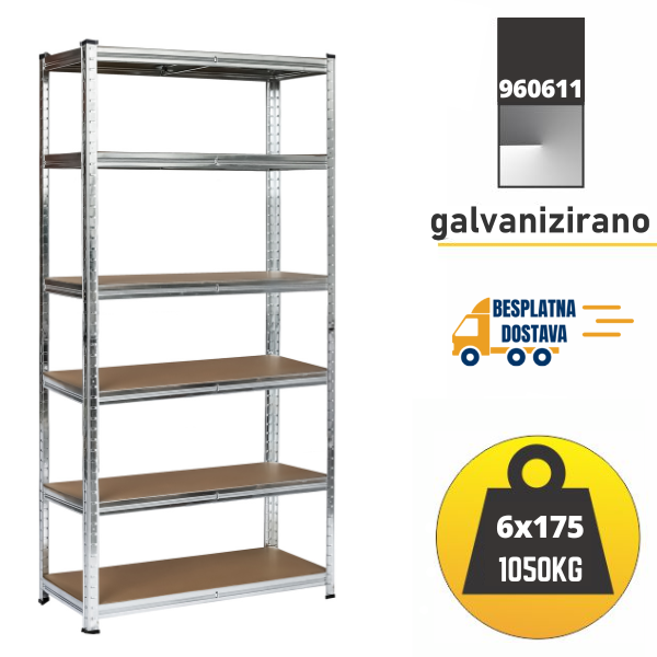 Polica metal-medijapan 220x90x60cm, 6x175kg